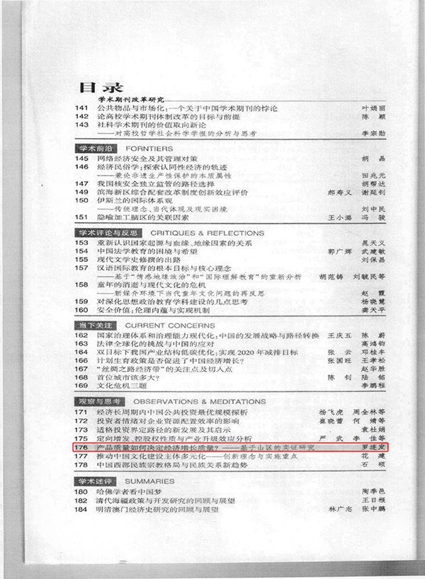 2014年第4期《高等学校文科学术文摘》刊发了我院罗连发老师撰写的论文《产品质量如何决定经济增长质量?——基于山区的实证研究》。现将全文转载如下: