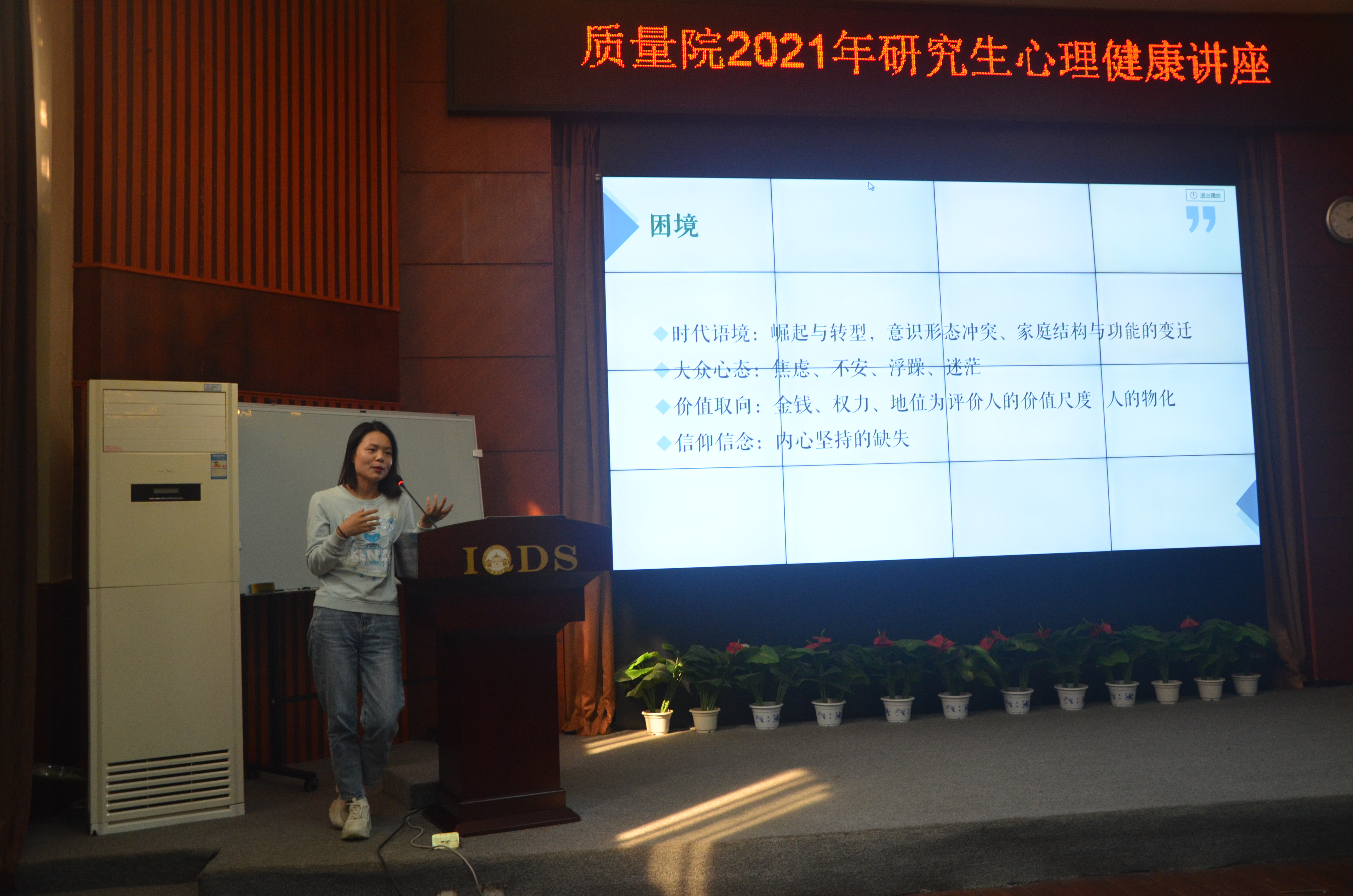 (通讯员 赵清华)10月28日下午,我院在多功能厅举行研究生心理健康教育讲座。武汉大学心理健康教育中心章吉老师受邀作题为“研究生新生心理调适”的心理健康教育讲座,2020级、2021级全体研究生聆听了讲座。