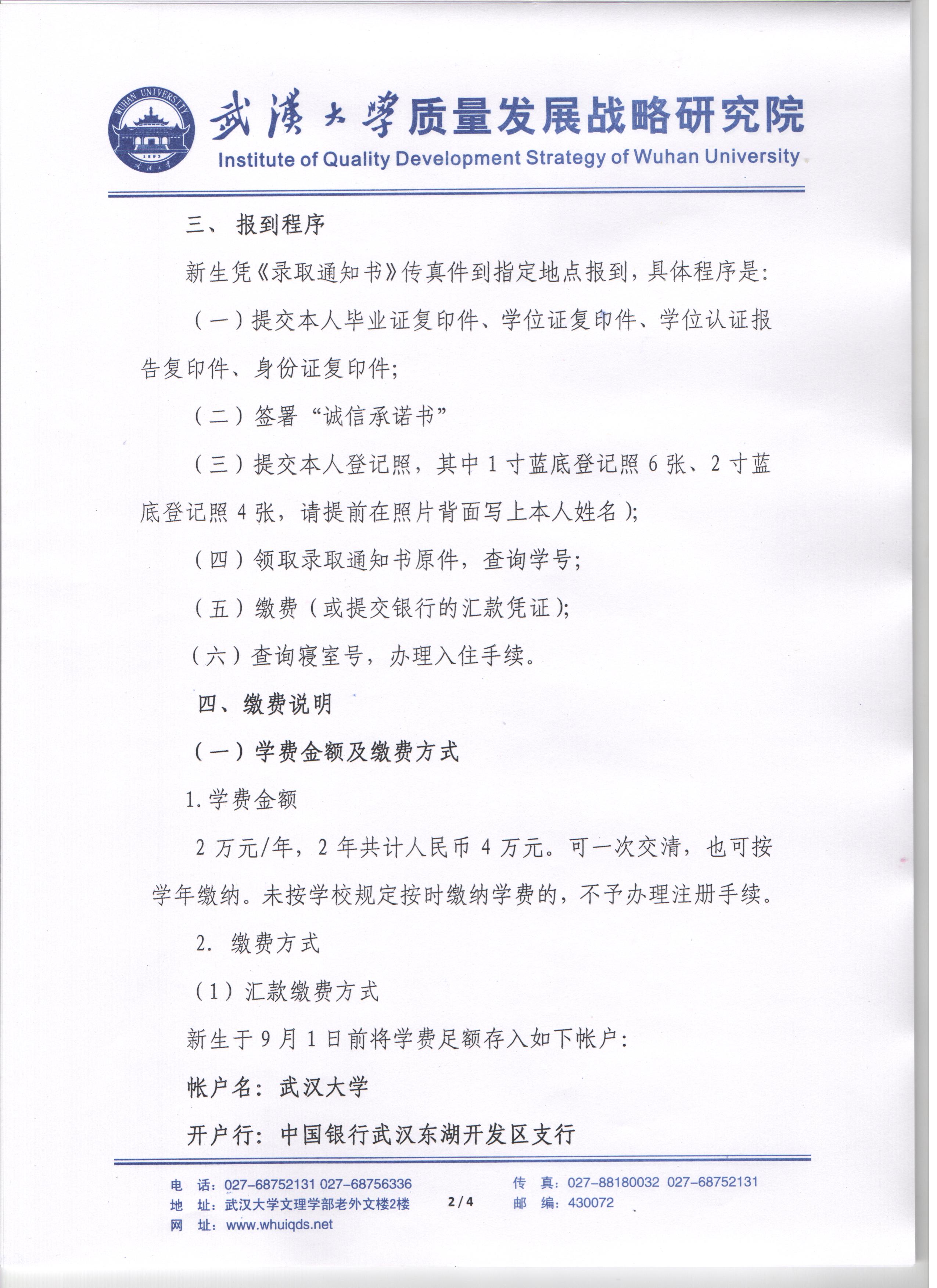 根据学校相关安排,我院2012级宏观质量管理方向硕士研究生将于2012年9月4日进行报名注册,并于9月5日上午9:00举行新生开学典礼,9月5日—9月7日进行新生入学教育,请各位同学按期报到注册,按时参加开学典礼及新生入学教育。如有特殊情况不能按时报到的同学,请务必以E-mail或者传真方式(传真:027-68756700,027-88180032)发送正式延迟报到说明。 附:2012级宏观质量管理方向硕士研究生报到须知 特此通知。