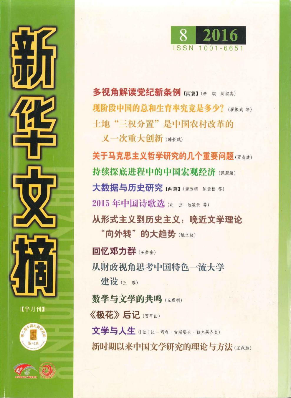 《新华文摘》2016年第8期在“新华观察”栏目中,以整6个版面全文转载我院程虹教授、许伟博士的论文《质量创新:“十三五 ”发展质量提高的重要基础》。该论文原载于《宏观质量研究》2015年第4期,原文约19000字。