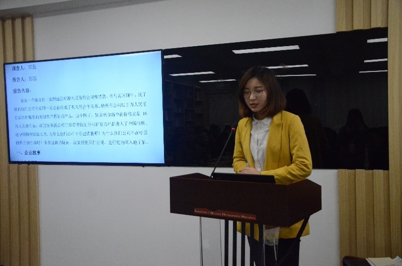 随后,郜蕊、白云、谢繁宝、刘奔、陈佳、郑秀、王燕、刘俊俊和刘双双等9名同学先后分享了他们的社会实践调查报告。报告的主题既有房地产楼市变迁、中小企业融资难、银行经营现状、企业技术创新发展,也有农民工创业逆袭、外卖小店的营销之路、基层公务员的转型发展和企业家的困惑等。