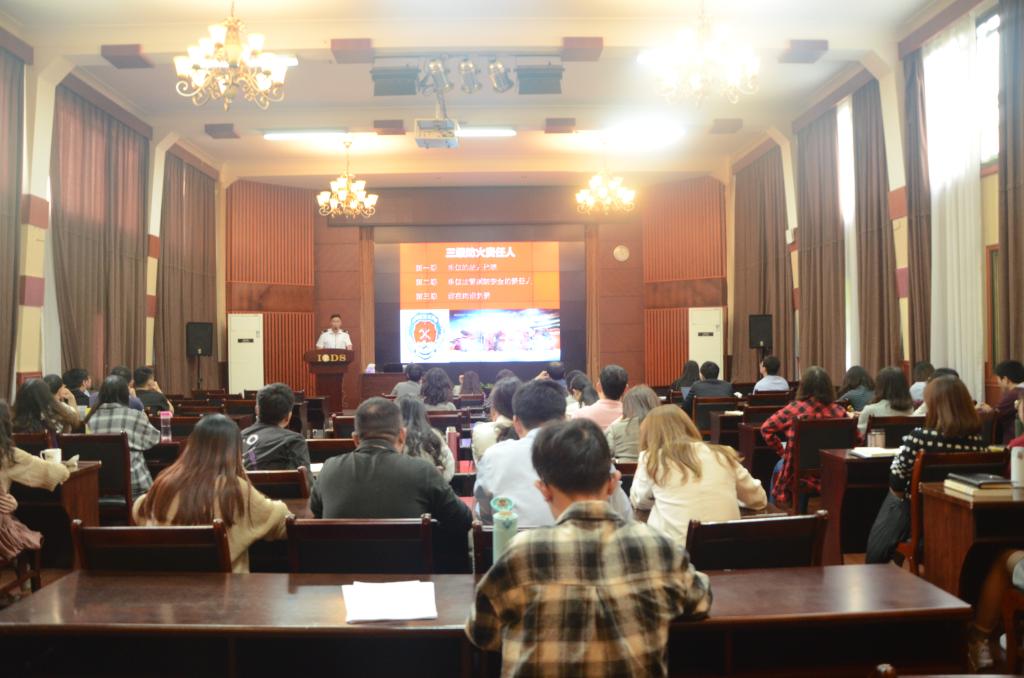 为进一步提高全院师生消防安全意识,进一步掌握消防安全知识及基础消防器材使用方法,4月18日下午,我院在多功能厅举行了消防安全知识培训讲座。此次培训邀请武汉全民防火中心教官刘政主讲,全院师生参加培训学习。
